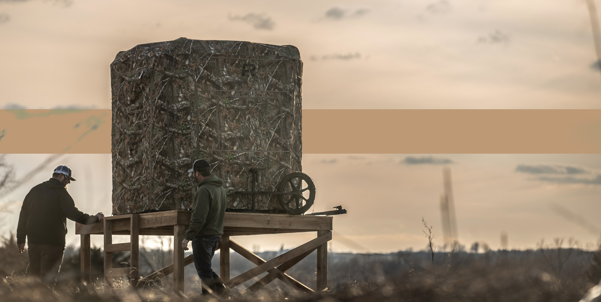 Fore Runner Blinds is the first portable soft-sided blind of its kind in the hunting industry. The Fore Runner blind was designed by hunters to hold up to harsh late season elements and to be extremely user friendly. It was also designed with the largest windows in the industry for the best shot possible. When you need to move the blind there is no need to worry about fiberglass rods or hubs to collapse. All you do is lower the wheels on the aluminum frame and either move it by hand or ATV.